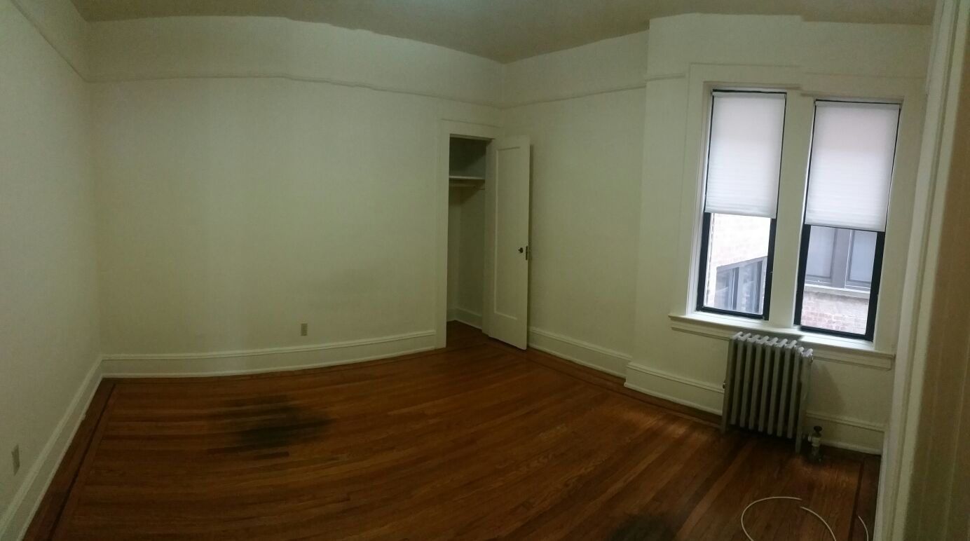 Bright one bedroom apartment with ten-foot ceilings and hardwood floors. Large windows, generous closets, fully tiled bathroom, and renovated kitchen with range & refrigerator. This is in a 4-story brick elevator building with landscaped grounds. Laundry facilities in the building. 24/7 Resident Manager and emergency maintenance. Intercom and video surveillance throughout.